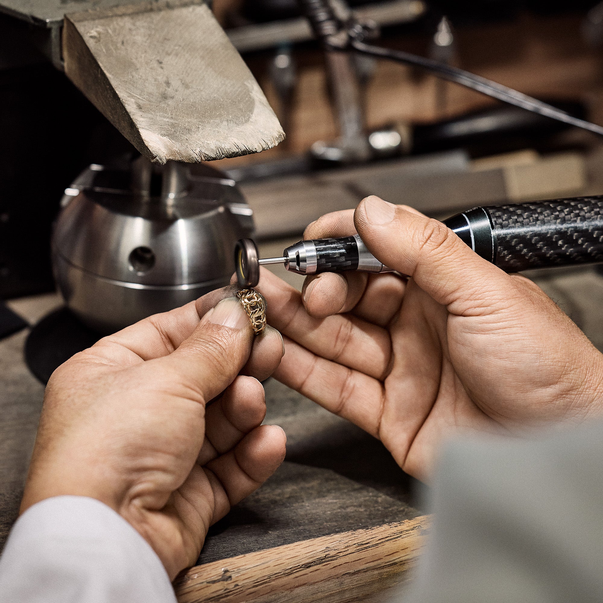 All jewelry marked OroRenew™ goes through our unique restoration process. It all begins when a piece arrives at our in-house workshop team, where our master goldsmiths carefully analyze the jewelry.