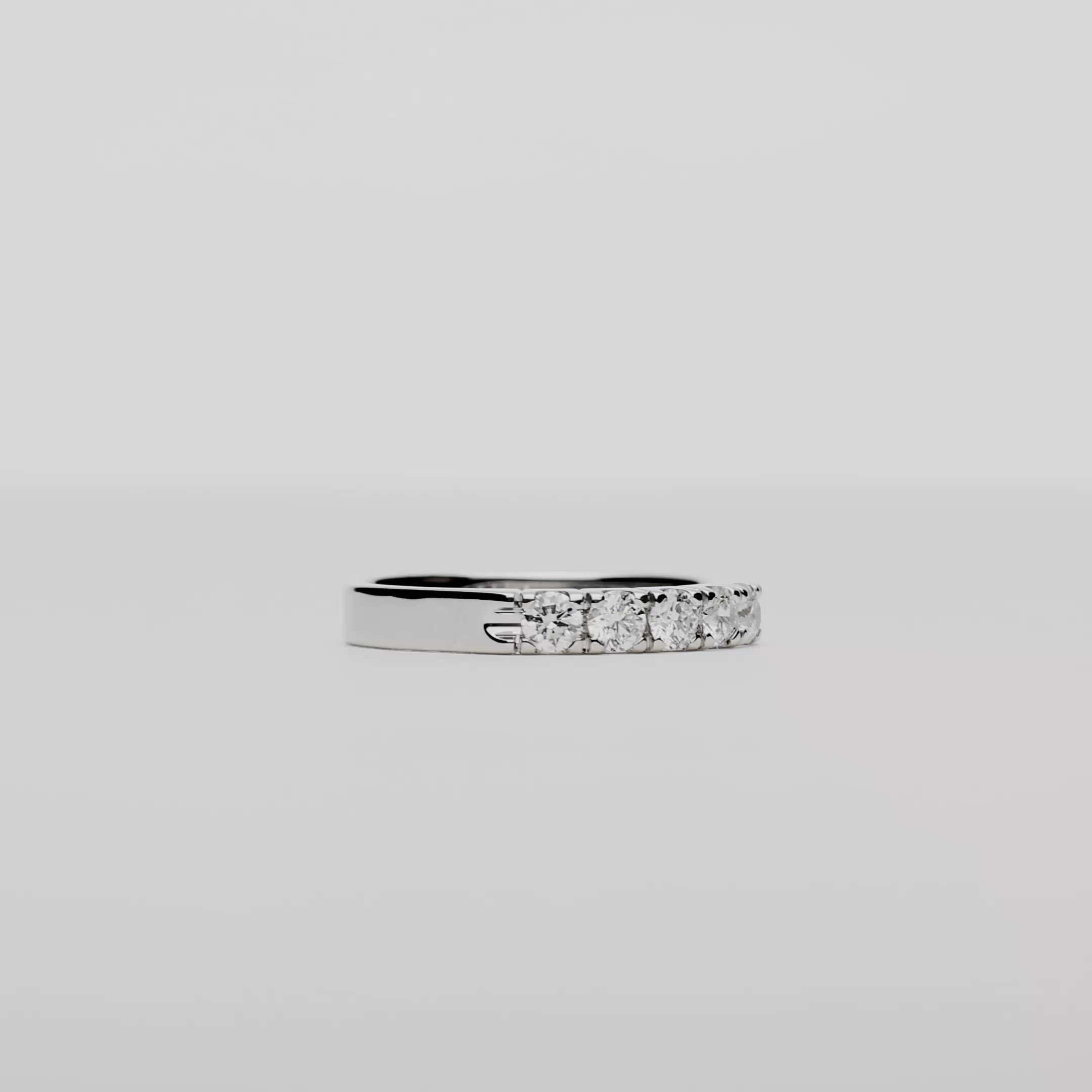 Eternity Ring in 18K white gold with five diamonds totaling 0.40 Carat, quality H I. The ring weighs 2.95 grams and measures 3.00 millimeters in width and 1.03 millimeters in height.