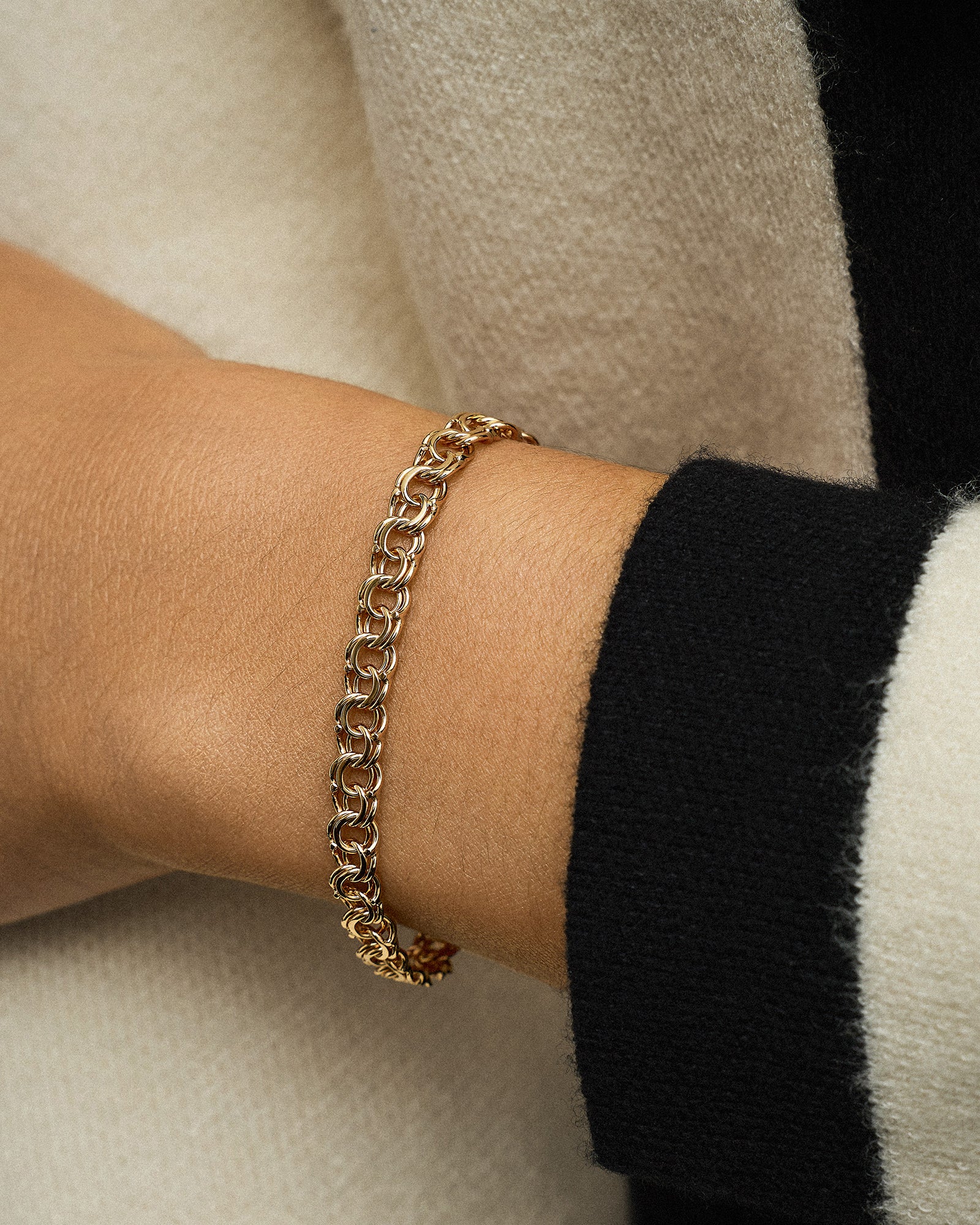Tunnare bismarckarmband i guld ger ett mer elegant uttryck där länkens form och hantverk får stå i centrum. Den klassiska bismarcklänken skapar ett sofistikerat intryck som känns diskret men genomtänkt. Ett tunt bismarckarmband bärs med lätthet runt handleden och passar utmärkt för daglig användning, samtidigt som det enkelt kompletterar en mer uppklädd stil. Med sin mångsidighet fungerar det lika fint på egen hand som tillsammans med klocka eller andra armband för en personlig helhet. Alla bismarckarmband i våra kollektioner är tillverkade i solitt äkta guld och i fullkomligt nyskick.