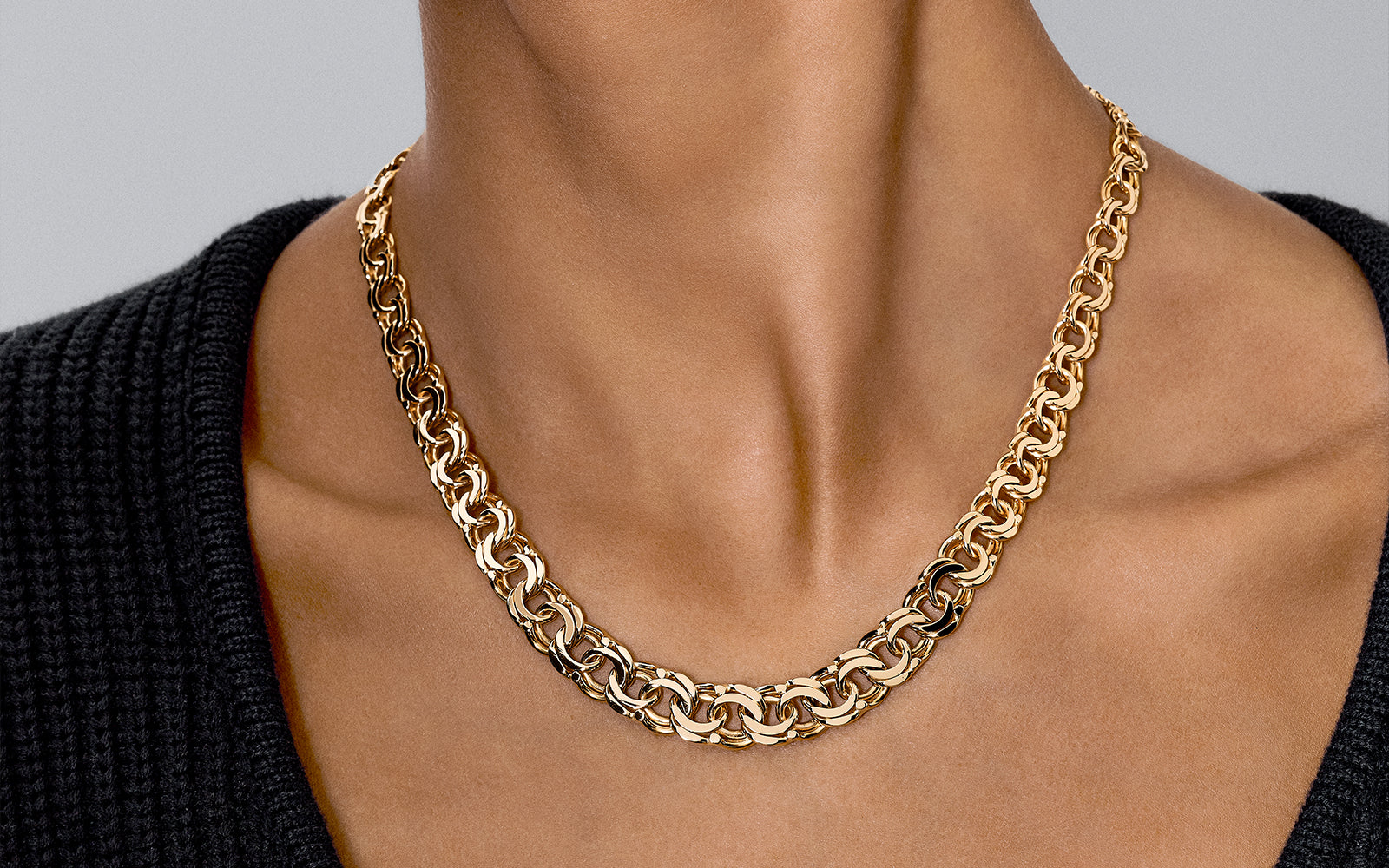 Bismarck necklaces feature a charming and timeless design, suitable for both everyday wear and special celebrations. Our necklaces are forged from genuine gold and showcase a unique link design, giving them a stylish and subtle touch. The Bismarck necklace is a beautiful accessory that makes a tasteful complement to any outfit. It also carries a history that few other Swedish models can match.