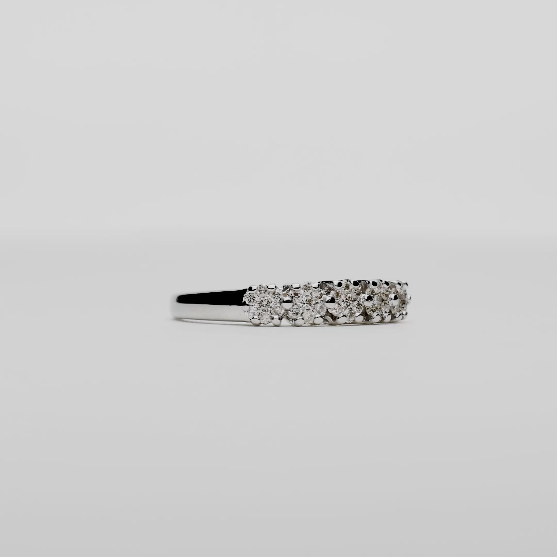 Gullring i 18K hvitt gull med runde briljantslipte diamanter som veier totalt 0,63 Carat i kvalitet M I. Ringen har en vekt på 2,99 gram og måler 3,14 millimeter i bredde samt 4,33 millimeter i høyde.