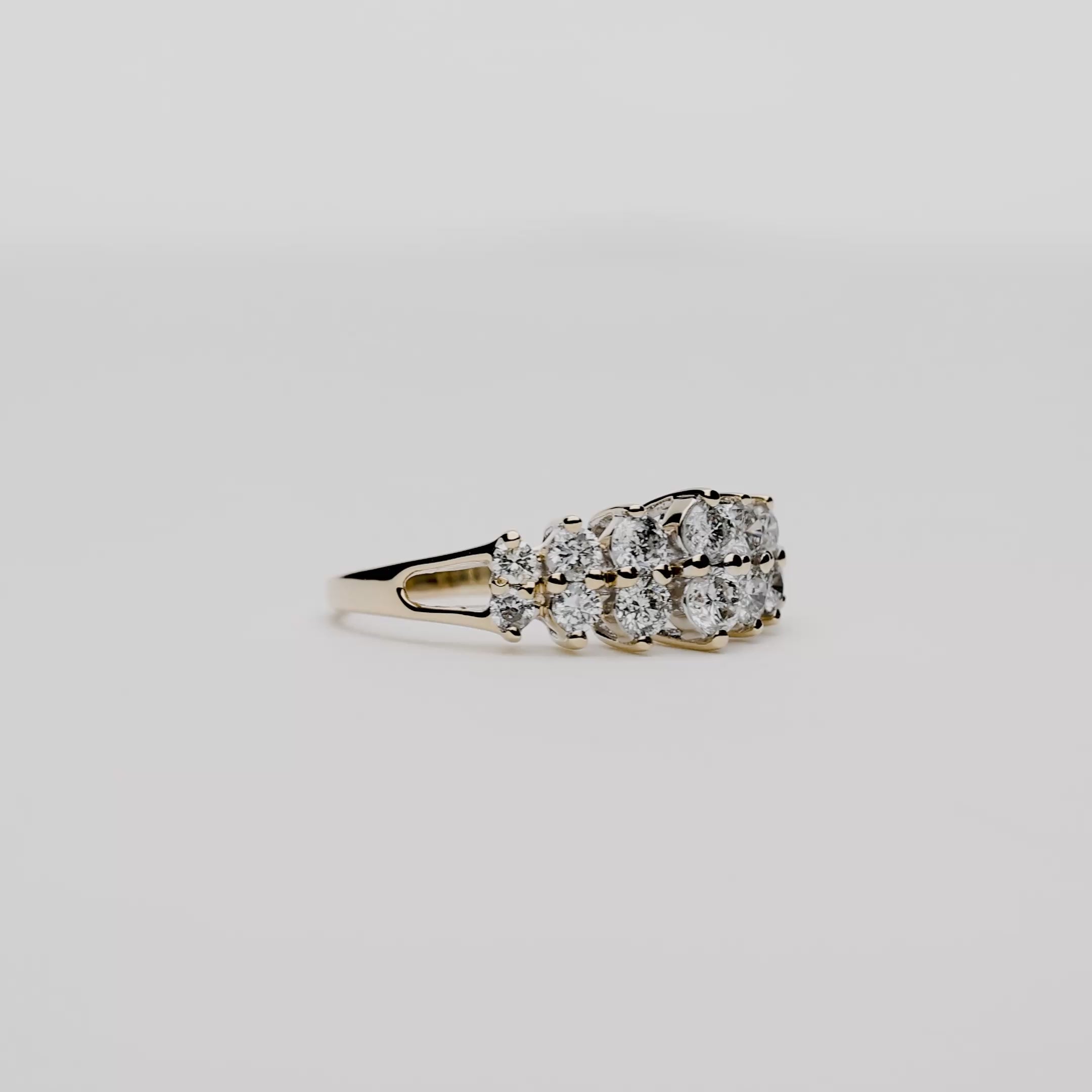 Gullring i 14K med totalt 14 briljantslipte diamanter på til sammen 0,84 Carat i fargen H og klarhet I. Ringen veier 2,53 gram og måler 7,60 millimeter i bredde samt 6,24 millimeter i høyde.