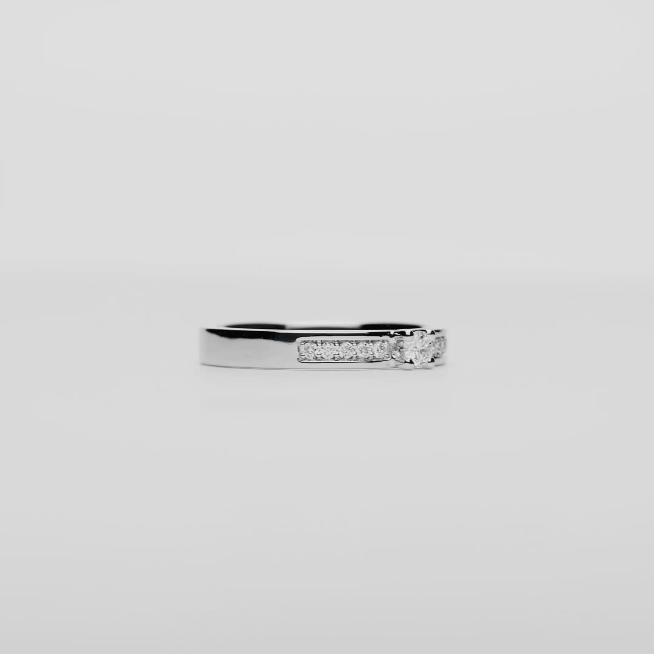 Prøv først, betal innen 30 dager.Sidesteinsring i 18K hvitt gull med en vekt på 3,58 gram. Ringen er dekorert med 11 naturlige briljantslipte diamanter som til sammen veier 0,18 Carat og er i kvalitet G VS.