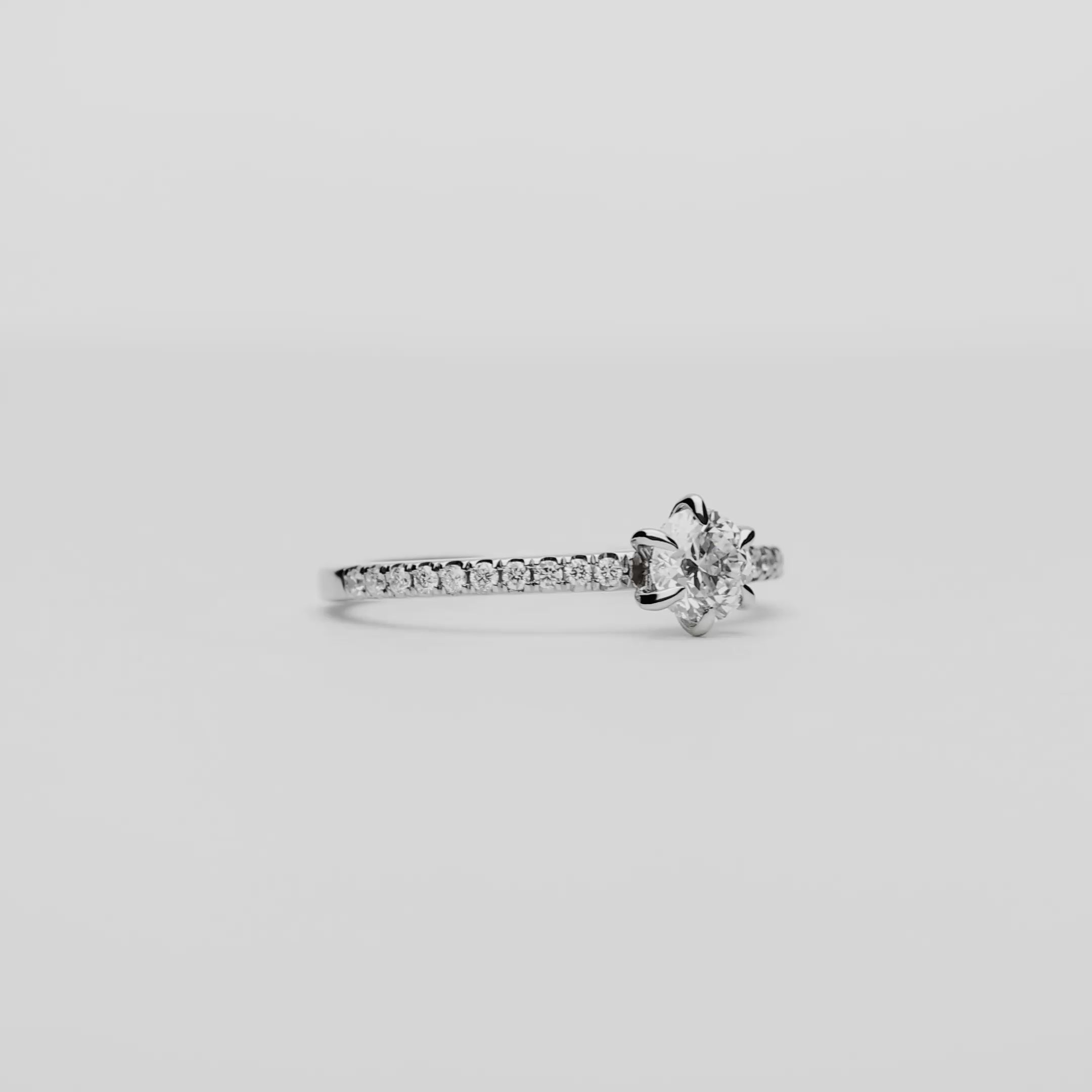 Prøv først, betal innen 30 dager.Sidesteinsring i 18K hvitt gull med en vekt på 2,57 gram. Ringen er prydet med 21 naturlige briljantslipte diamanter som til sammen veier 0,65 carat og har kvaliteten H SI.