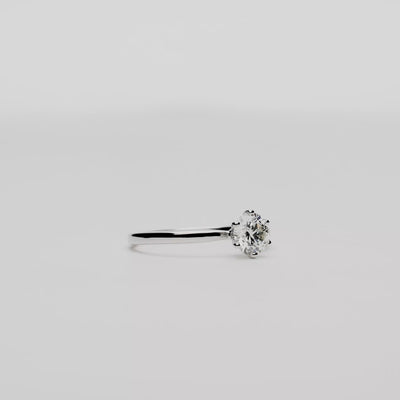 Enstensring i 18K hvitt gull med en briljantslipt diamant som veier 0,62 Carat i kvaliteten H SI. Ringen har en vekt på 1,89 gram og måler 1,80 millimeter i bredde og 1,40 millimeter i høyde.