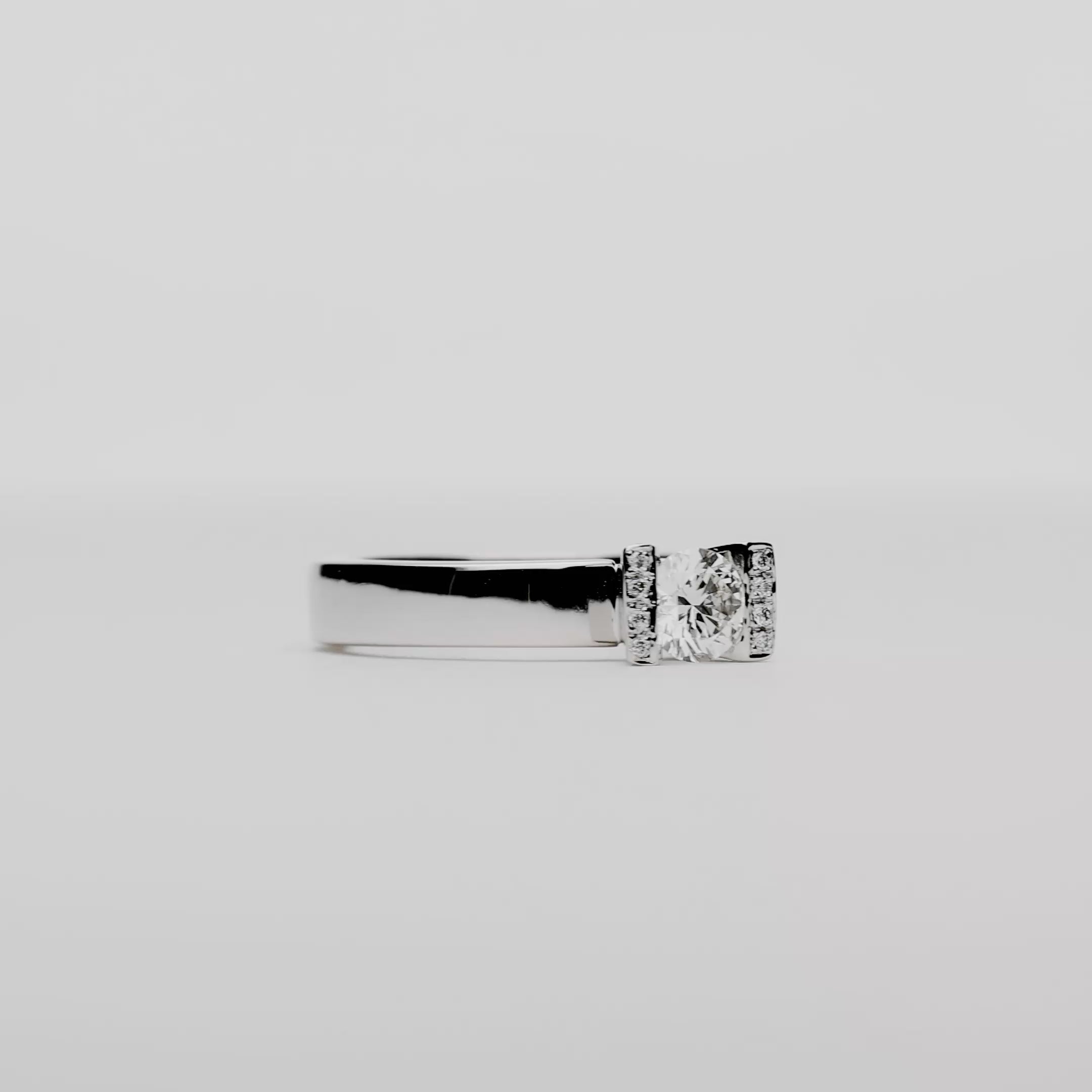 Enstensring i 18K hvitt gull med en briljantslipt diamant som veier 0,50 Carat samt 26 briljantslipte diamanter med en total Caratvekt på 0,13. Ringen har en vekt på 8,32 gram og måler 4,00 millimeter i bredde og 1,98 millimeter i høyde.