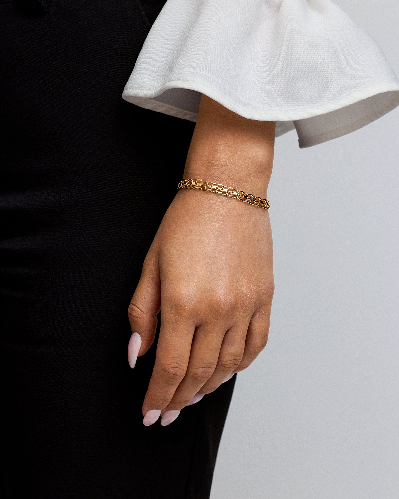 Tunnare X-länkarmband i guld kännetecknas av ett stilrent och välavvägt utseende där länken agerar komplement och fullbordar. Den karakteristiska X-länken skapar ett elegant och harmoniskt intryck som upplevs diskret. Ett tunt X-länkarmband bärs bekvämt runt handleden och lämpar sig väl för daglig användning, samtidigt som det tillför en sofistikerad helhet till mer uppklädda sammanhang. Samtliga X-länkarmband i våra kollektioner är tillverkade i solitt äkta guld.