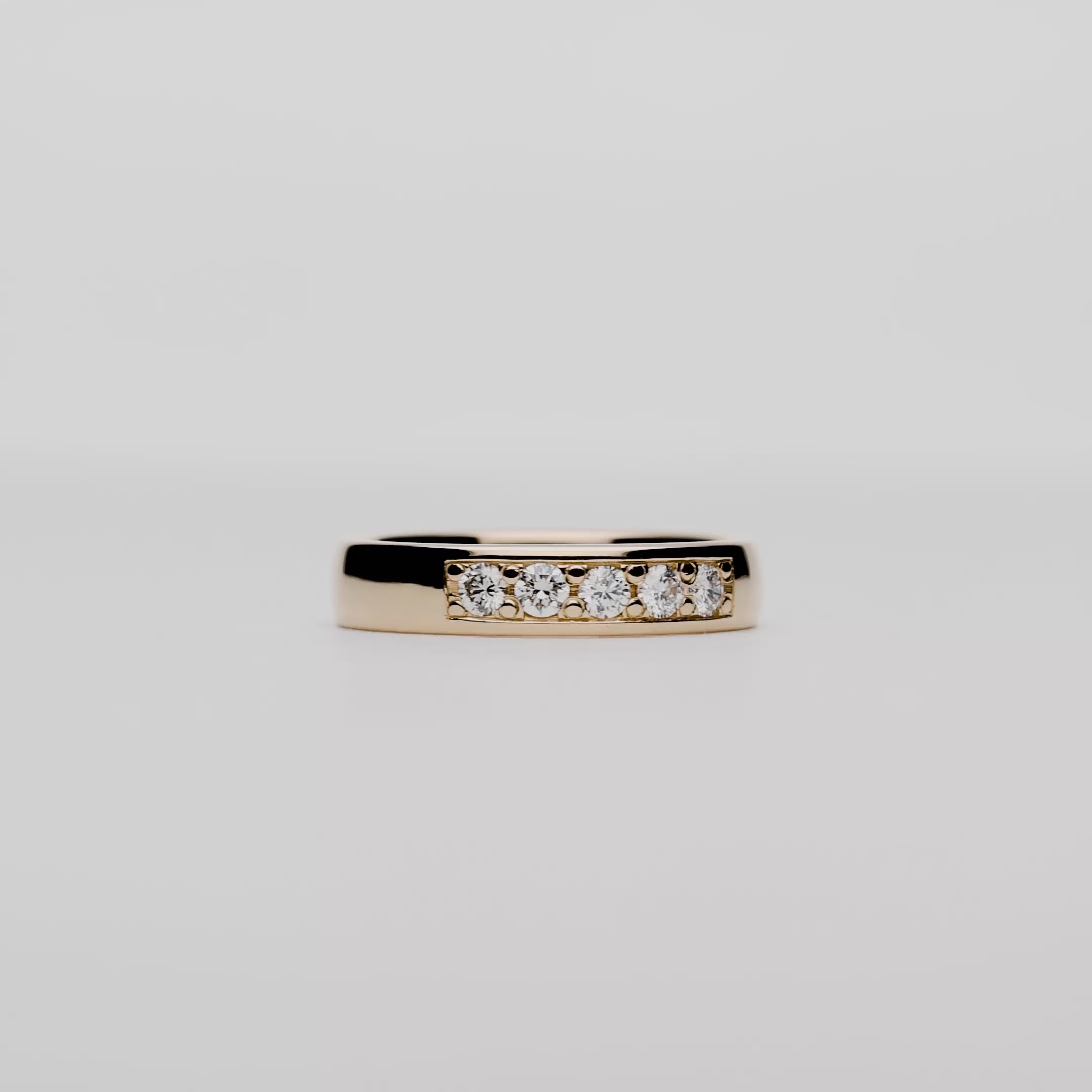 Prova först, betala inom 30 dagar.Vigselring av modellen alliansring i 18K guld. Ringen är besmyckad med 5 stycken naturliga briljantslipade diamanter som tillsammans väger 0,25 carat och är i kvalitén G VS. Alliansringen väger 3,92 gram och skenan har en bredd om 3,90 millimeter.