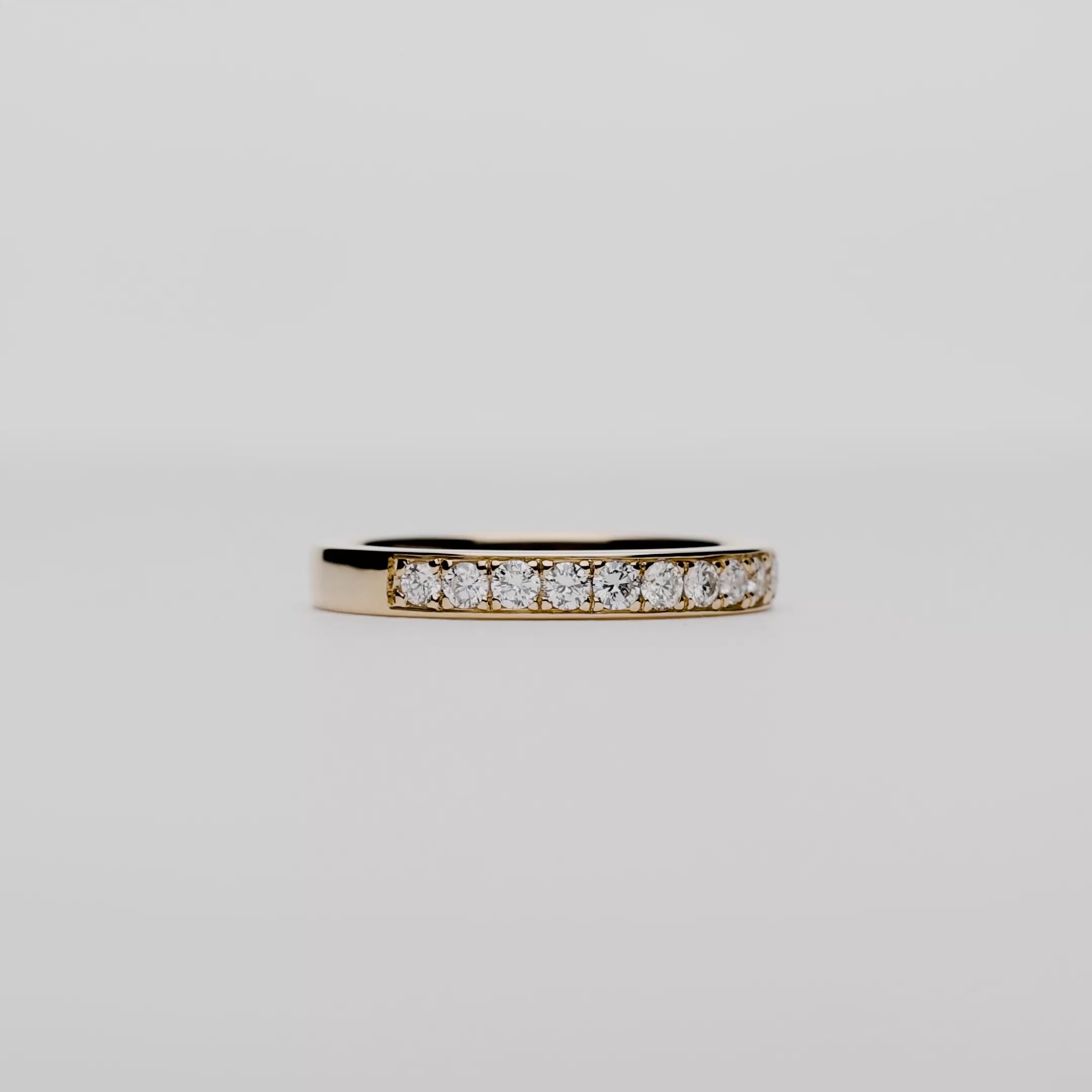 Prova först, betala inom 30 dagar.Vigselring av modellen alliansring i 18K guld. Ringen är besmyckad med 12 stycken naturliga briljantslipade diamanter som tillsammans väger 0,36 carat och är i kvalitén H SI. Alliansringen väger 4,02 gram och skenan har en bredd om 2,90 millimeter.