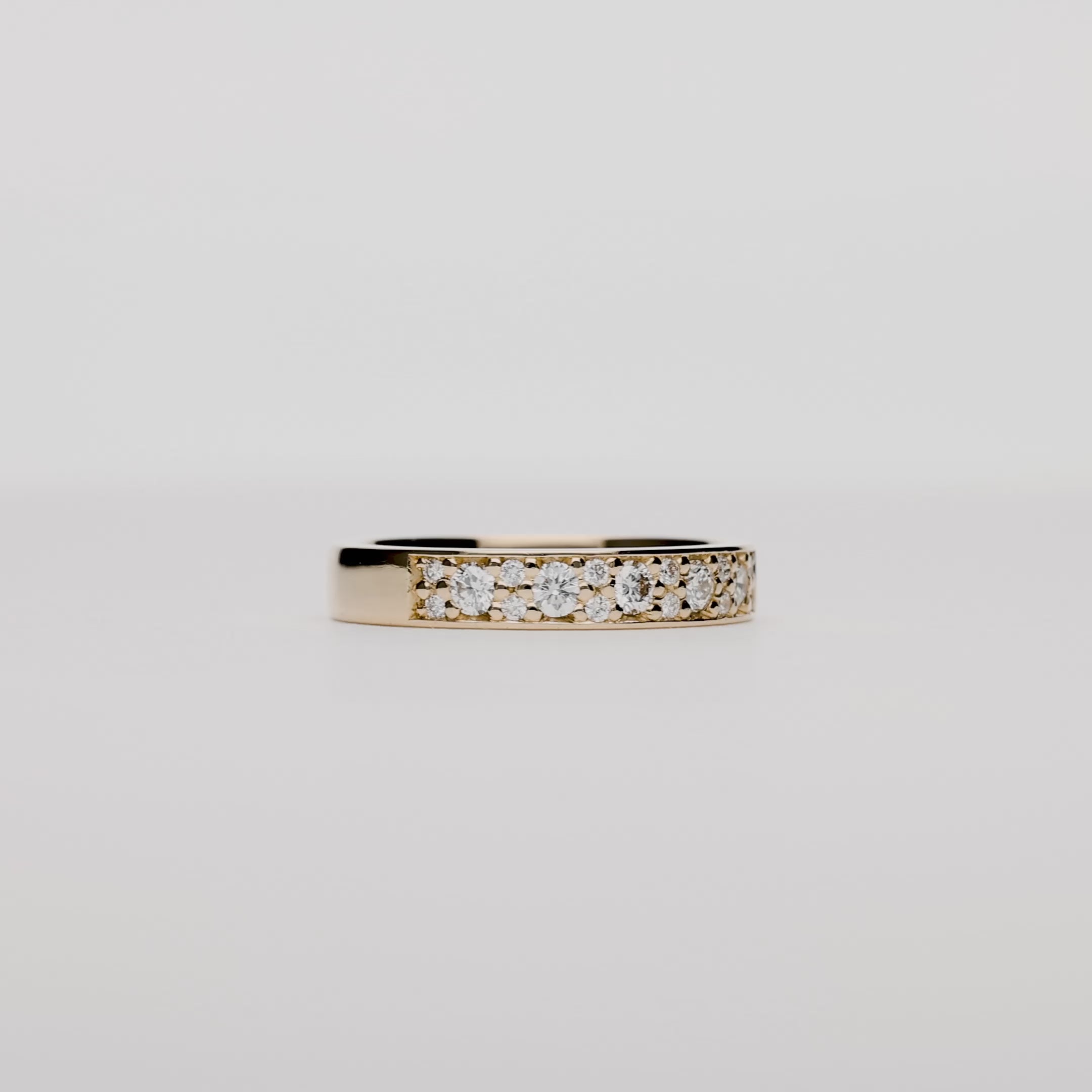 Alliansring i 18K guld med en vikt om 5,30 gram. Ringen är prydd med 17 stycken naturliga briljantslipade diamanter som tillsammans väger 0,47 carat och är i kvalitén G VS.