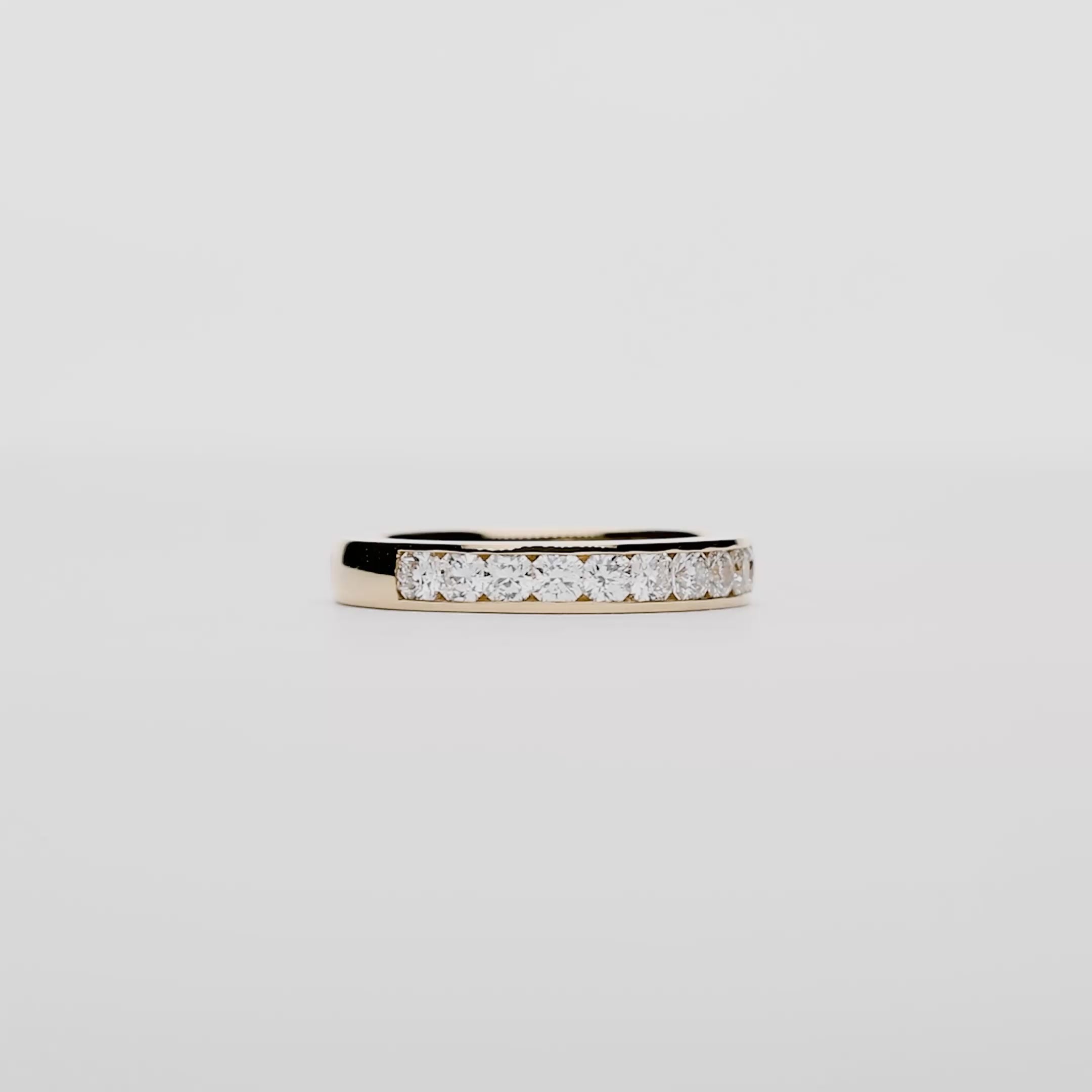 Prova först, betala inom 30 dagar.Alliansring i 18K guld med 10 stycken diamanter som tillsammans väger 0,60 carat. Diamanterna är i kvalitén G VVS. Ringen har en bredd om 3,30 millimeter och väger 4,51 gram.