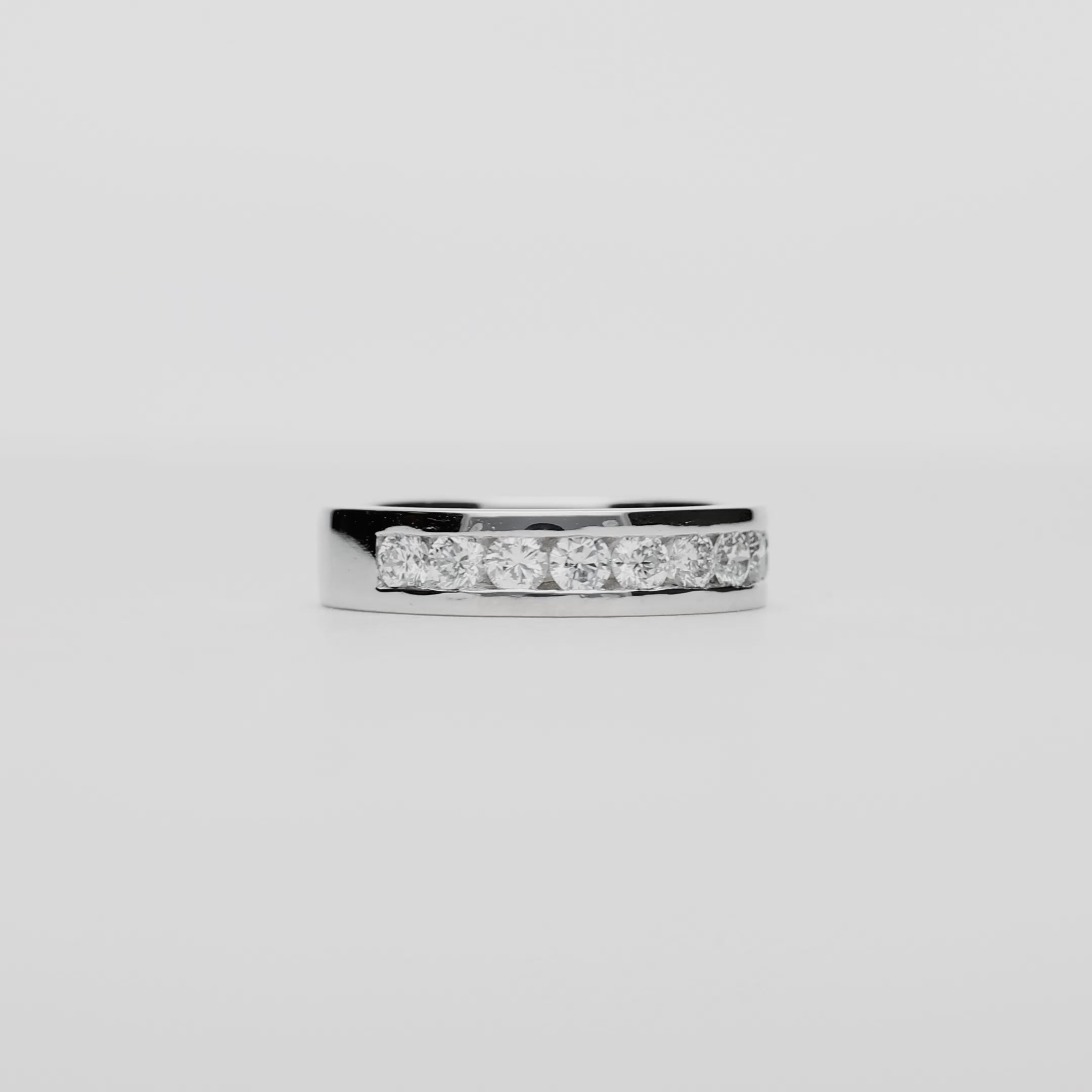 Alliansring i 18K vitguld med en vikt på 7,38 gram. Ringen är prydd med 9 naturliga briljantslipade diamanter, som tillsammans väger 0,72 carat och har kvaliteten H VS.