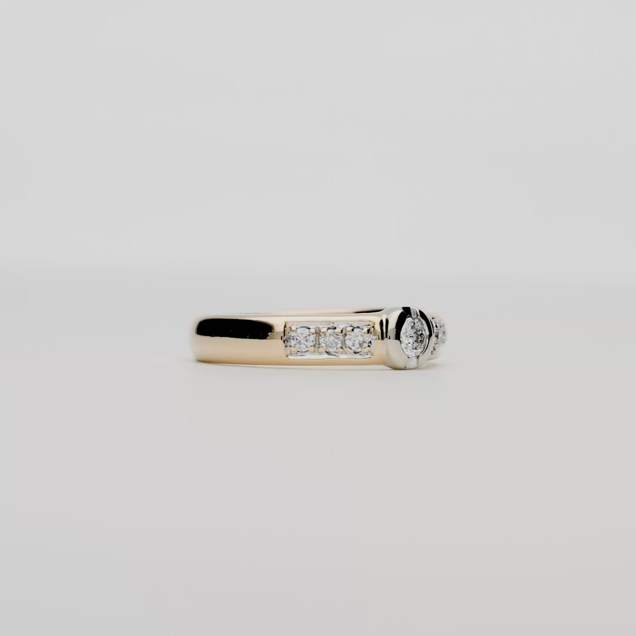 Prova först, betala inom 30 dagar.Sidostensring i 18K guld med en vikt om 4,48 gram. Ringen är prydd med 7 stycken naturliga briljantslipade diamanter som tillsammans väger 0,22 carat och är i kvalitén H I. Ringens skena har en bredd om 3,95 millimeter samt en höjd om 2,00 millimeter.