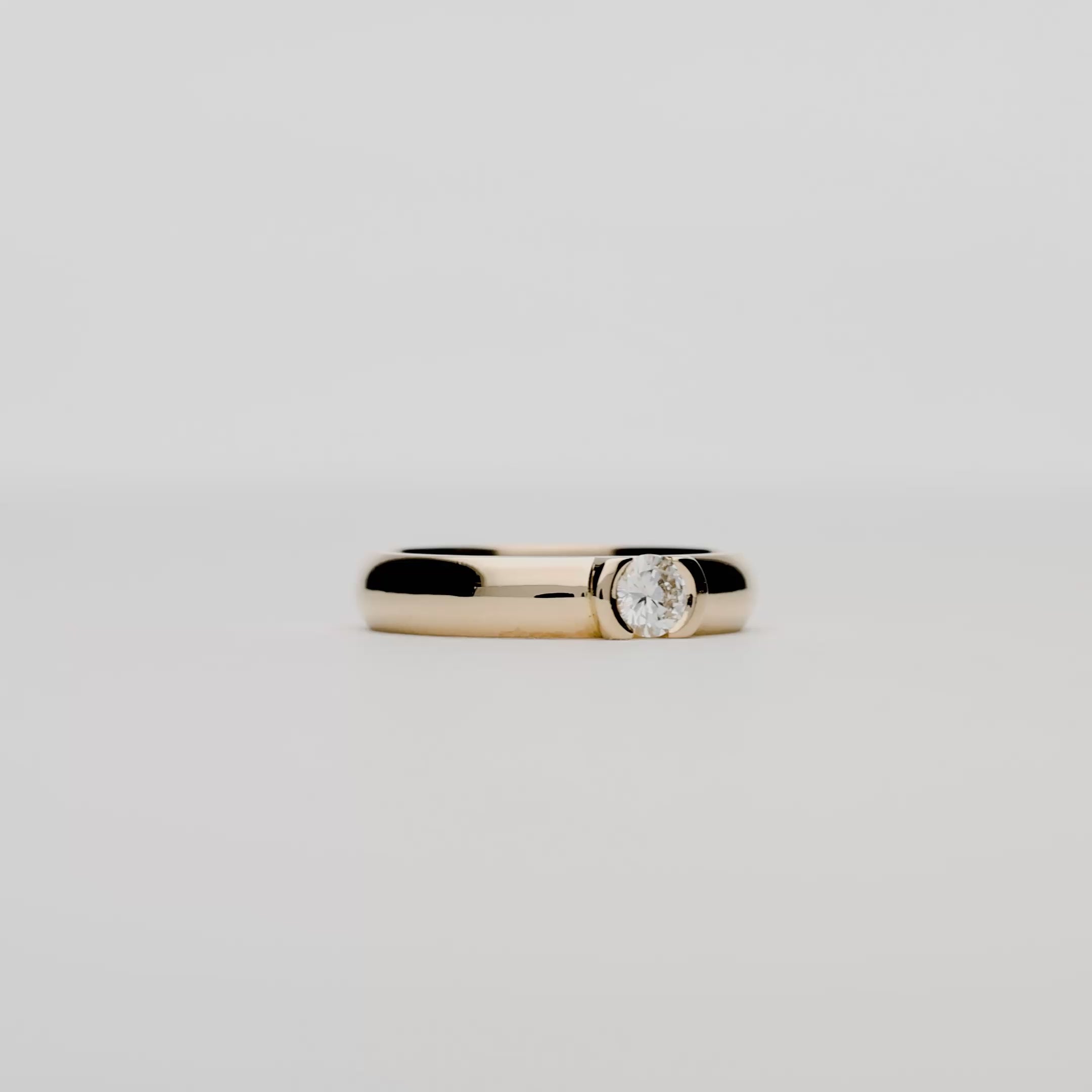 Solitärring i 18K guld med en vikt om 4,54 gram. Ringen är prydd med en styck naturlig briljantslipad diamant som väger 0,20 carat och är i kvalitén H SI. Ringens skena har en bredd om 3,78 millimeter samt en höjd om 1,78 millimeter.