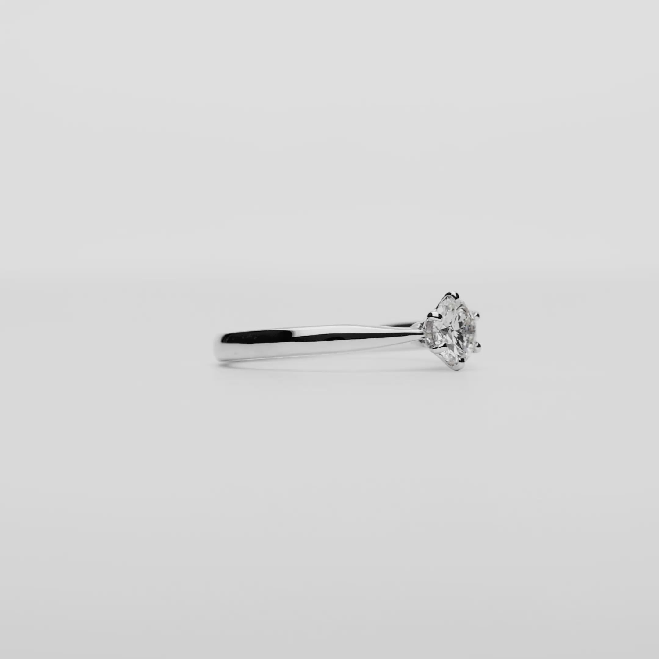 Solitärring i 18K vitguld med en vikt om 2,94 gram. Ringen är prydd med en naturlig briljantslipad diamant som väger 0,50 carat och är i kvalitén F SI1. Diamanten har en inskription ifrån GIA med certifikat nummer: 6271459435